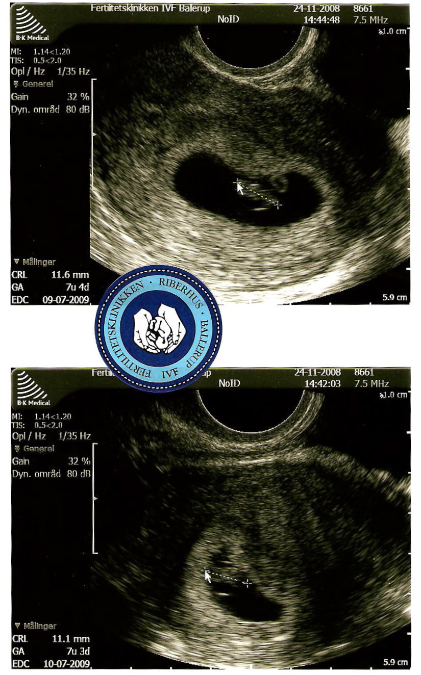 Det føles som et mirakel. Der ER en lillebitte baby i min mave! Vi så hende/ham for første gang i dag på scanningen. Og mest fantastisk: Vi så det lille bitte hjerte slå! Det var så fantastisk. Tårerne trillede ned af mine kinder, jeg krammede min kærestes hånd – jeg kunne være blevet liggende og bare kigget på det lille myr og det lille bankende hjerte.