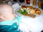 Selve gudstjenesten gik vældig fint; Mai-Britt klarede skærene og fik båret Nicholas Carl stolt op gennem kirken. Lige før han skulle døbes, var han faldet i søvn ved morens babs. Og heldigvis har vi trænet det med vand i hovedet i badekarret og til svømning, så det tog han i strakt arm.