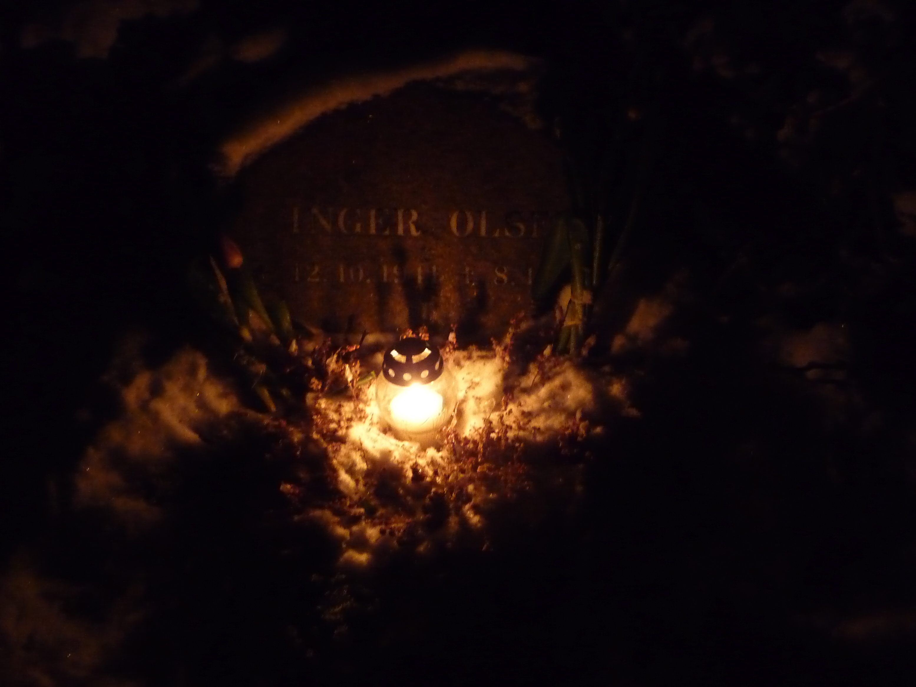 I dag er det så 10 år siden, at min mor døde. En mærkelig dag, for på sin vis føles det slet ikke som om det er 10 år siden, og på sin vis føles det som om det var i et andet liv. Jeg var oppe og sætte lys på kirkegården her til aften – hendes grav var dækket af sne, så jeg måtte rydde lidt sne for at kunne stille lyset.
