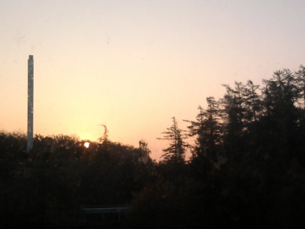 Sådan ser det ud om morgenen hos os. Solopgangen er lige udenfor vinduet ovre bag skoven. Og lige pt står vi op lidt før solen – også i weekenderne – takket være NC.