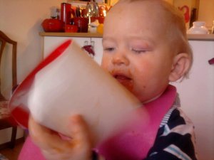 Jeg har lige lagt NC til middagslur. Jeg holdt ham i mine arme og vuggede ham blidt og efter et par minutter sov han trygt og sødt i mine arme. Jeg elsker det: At kunne sidde der stille og roligt og betragte hans smukke ansigt og dufte til hans hud. Som mest af alt duftede af ketchup.
