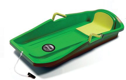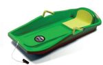 Tilbage til sportsforretningen i centeret. Der lå to grønne bobslæder … godt nok med bremser, men pyt skidt. 200 kroner på bordet, og nu har NC en lysegrøn Stiga bobslæde med gule bremser og håndtag. Behøver jeg at nævne at bremserne kan pilles af?! Jeg har forsynet bobslæden med hans navn, så nu er vi køreklar!