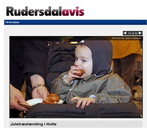 Bagefter stod vi i kø for at få æbleskiver. Det tog han pænt. Han sad bare i klapvognen og kiggede sig omkring. Og så ondulerede han 3 æbleskiver, en æblejuice, samt en julebolle. Der kom en lille pige hen og kiggede sultent på hans æbleskiverester, for det var hvad det var. Da han så hende skyndte han sig nemlig at tage en bid af dem alle tre og sagde ‘pige ikke ta’.
