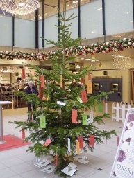 Men der er faktisk en mulighed … ønsketræet i Lyngby Storcenter hvor man kan plukke et barns eller voksens ønske til ca. 200 kroner, købe gaven i centret, aflevere den i informationen og på den måde give en julegave til et menneske, der ellers ikke får så meget til jul. Tanken er så fin, synes jeg. Jeg må vist lige forbi det træ og finde en lille drengs højeste ønske …