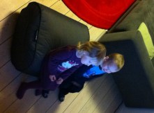 Jeg tror måske, at NC blev lidt forelsket i vores venners lidt ældre pige, der rimelig hurtigt spurgte ham, om han ikke også ville have tøjet af. Han kom derefter hen og spurgte mig, om han måtte få tøjet af. Jeg spurgte, om han virkelig ville have Thomas Tog-blusen af. Det ville han gerne – for første gang i 48 timer. Han har ellers hårdnakket nægtet at tage den af. Og så kommer der sådan en lille lyshåret pige vimsende, og så vil han lige pludselig gerne smide Thomas Tog blusen!!