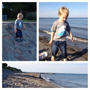Og så afsted til Skodsborg strand. Nicholas pilede afsted i strandkanten, vi foldede tæppet ud og satte os i sandet og spiste.