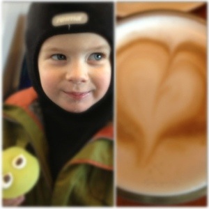 Vi gik en tur over i skoven. Det var pivkoldt, men vi var klædt godt på. Nicholas pilede rundt i skoven. Vi gik ned og tog toget til Lyngby, hvor vi ventede til Baresso åbnede, så vi kunne få os en vanilla latte og et morgen complet.