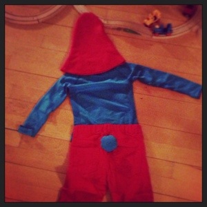 Nu håber jeg bare på, at Nicholas gider have smølfetøjet på 🙂 Det ved man jo aldrig, selvom han i en måned har fastholdt, at han skal være gammelsmølf til fastelavn.