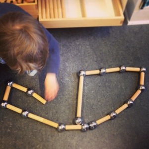 Vi var på biblioteket lørdag, og vi lånte en hel stak bøger. Nicholas legede med deres magnetiske legesæt, og han sagde ‘se mor, jeg har lavet en slags hjerte til dig’