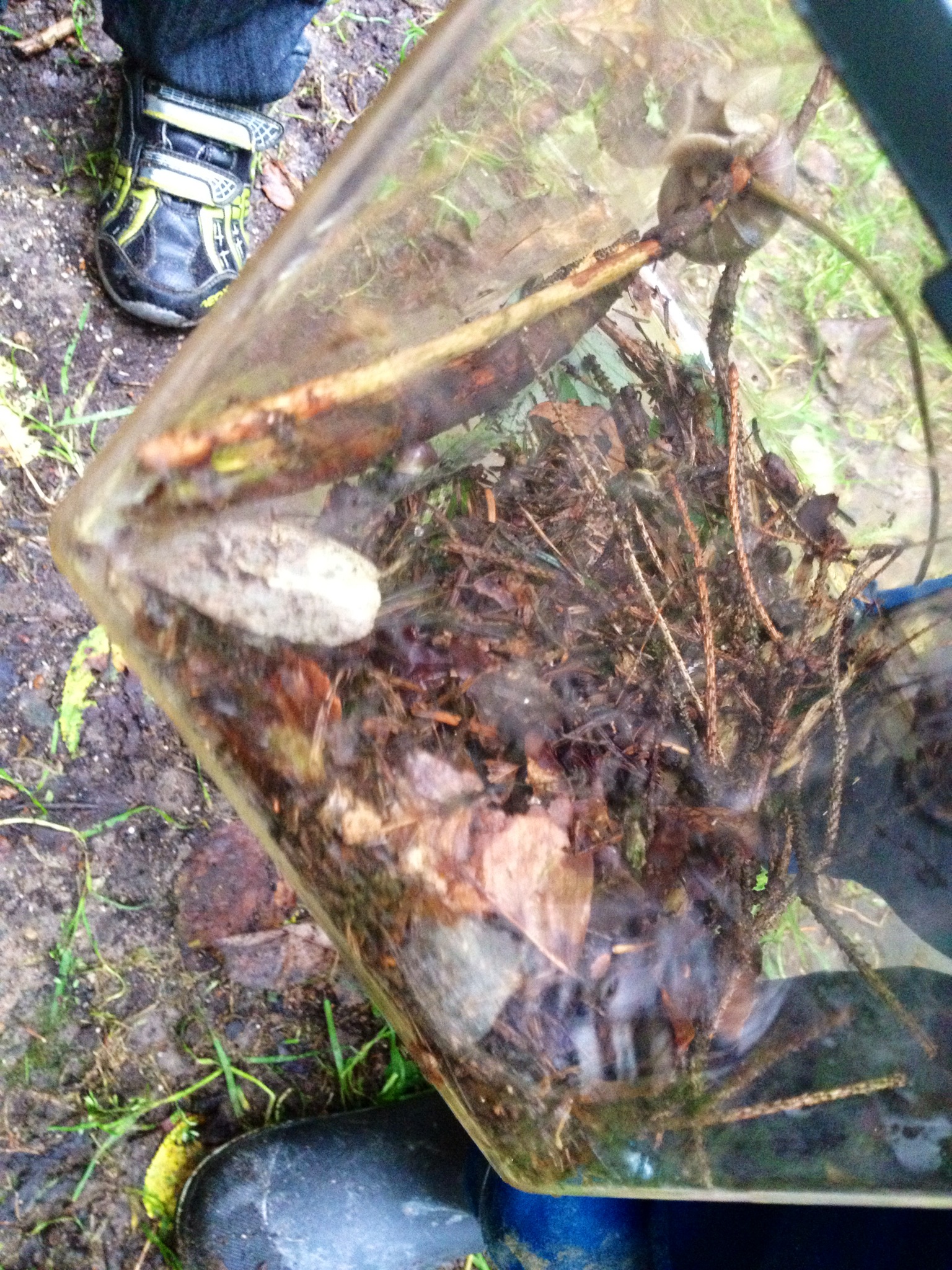Planer er til for at blive lavet om, i dag skulle vi have været på edderkoppesafari, men dagen løb af med os, og plan B blev fantastisk! I stedet var vi i skoven med drengens bedste ven. Vi havde det store terrarie med, og vi fangede sløve snegle, en lille lynhurtig bille, store dovne blåsortglinsende biller, bænkebidder og en enkelt ørentvist.