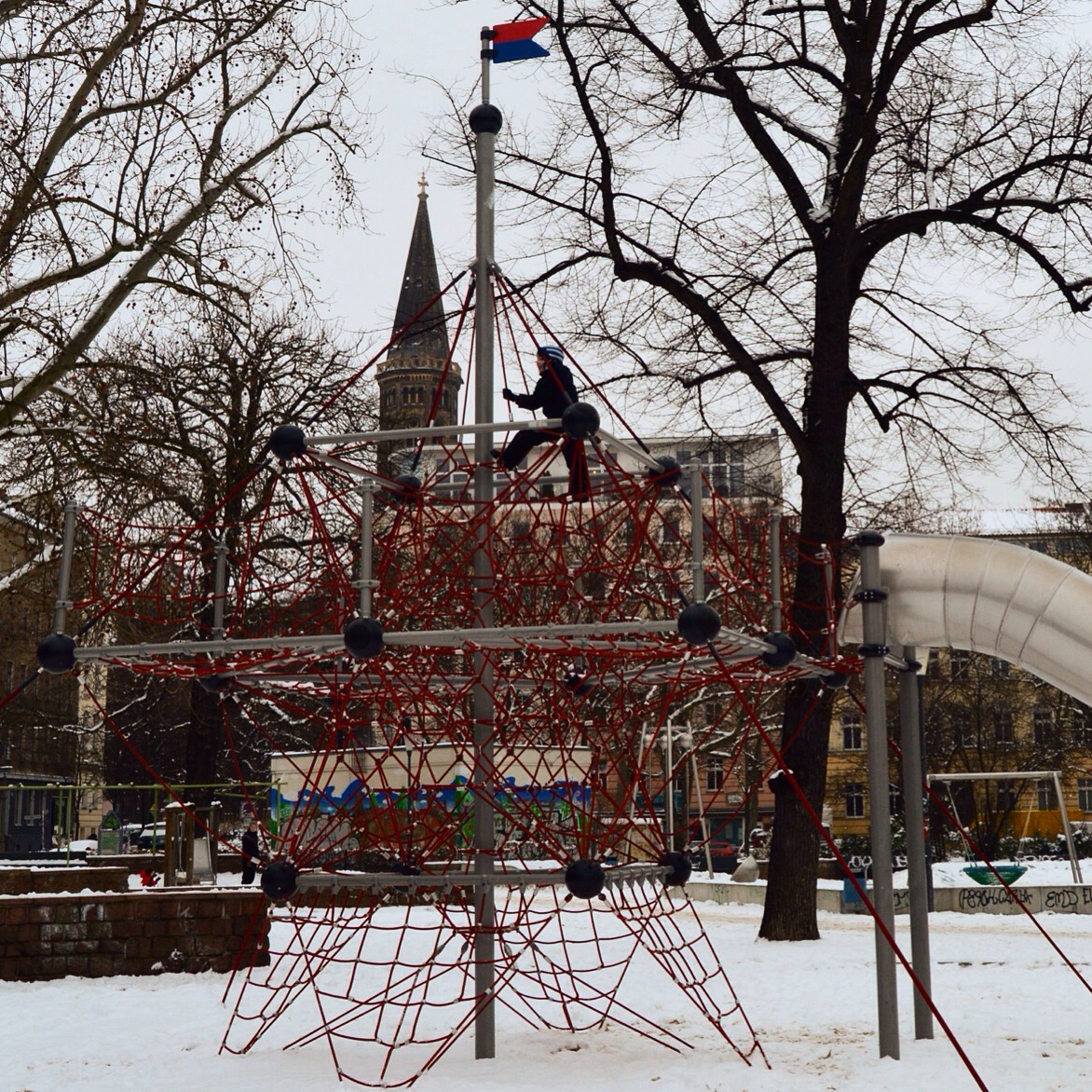 I Berlin til nytår var vi i Volkspark am Weinberg for at lege på legepladsen. Jeg elsker det sted, der er så hyggeligt og smukt på den afslappede måde. Og så er legepladsen bigger, better og viel mehr Spaß end nogen anden legeplads, vi kender.