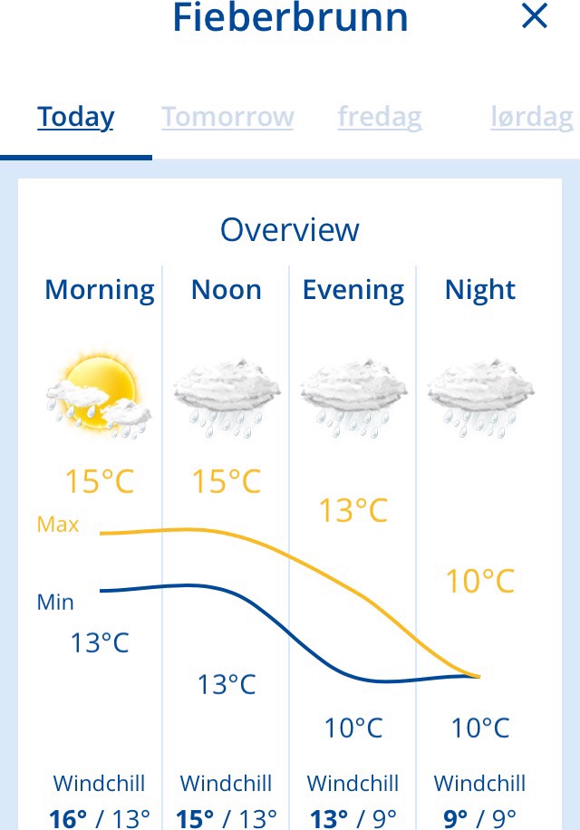 Vejrudsigten var fuld af møgvejr, så det var lidt en chance at tage, men da vi kom dertil var det tørvejr. Det ville først for alvor begynde at regne omkring klokken 13, og der ville komme Gewitter klokken 16, så vi havde tid nok til at nå at kælke og gå en tur.