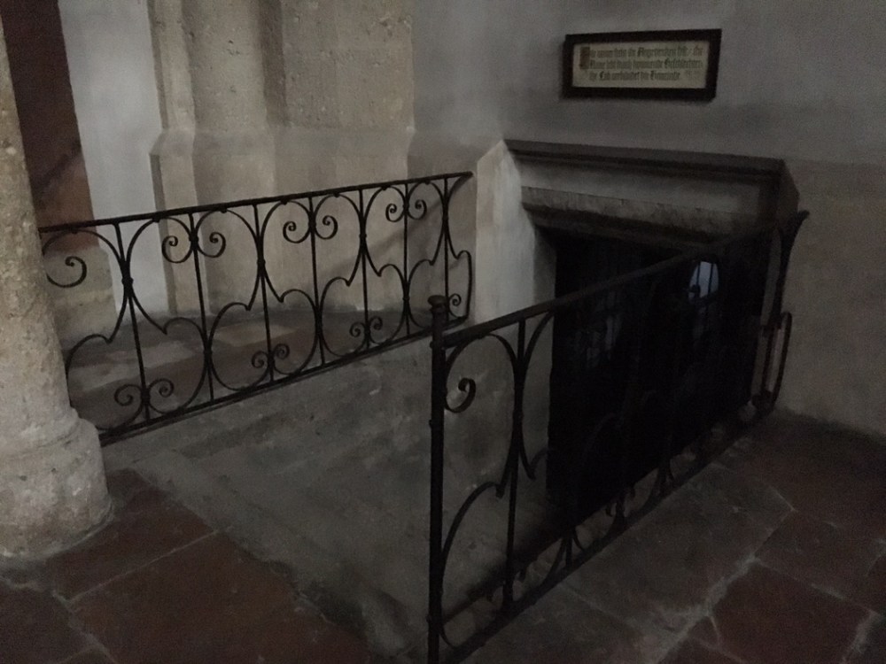 Da vi stod der udenfor klosteret, gav det sig til at styrtregne. Det regner altid i Salzburg i kortere eller længere tid. Vi ventede på, at det gik væk – og til slut gik vi ad en lille stejl hyggelig gyde ned i byen, hvor vi spiste frokost.