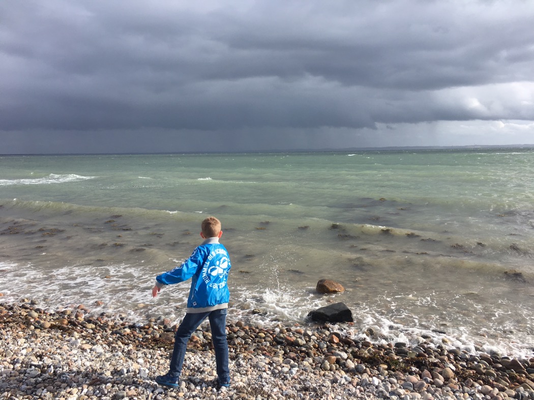 En af de dejlige gåture med min skønne familie på stranden. Vi kastede mange sten i vandet. Hundredvis. Vi kæmpede om hvem der kunne ramme den store rødlige sten flest gange, og til sidst fik jeg det også lært 🙂