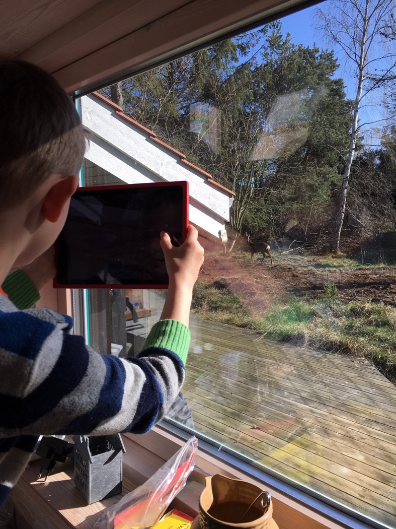 I haven bor der både hjorte (vi så 3), harer, egern og 2 fasaner. Min far sender af og til fotos til os af de hjorte, han har i sin have – og det med at være hjortefotograf er nu nedarvet i tredje generation (jeg gør det også :D)