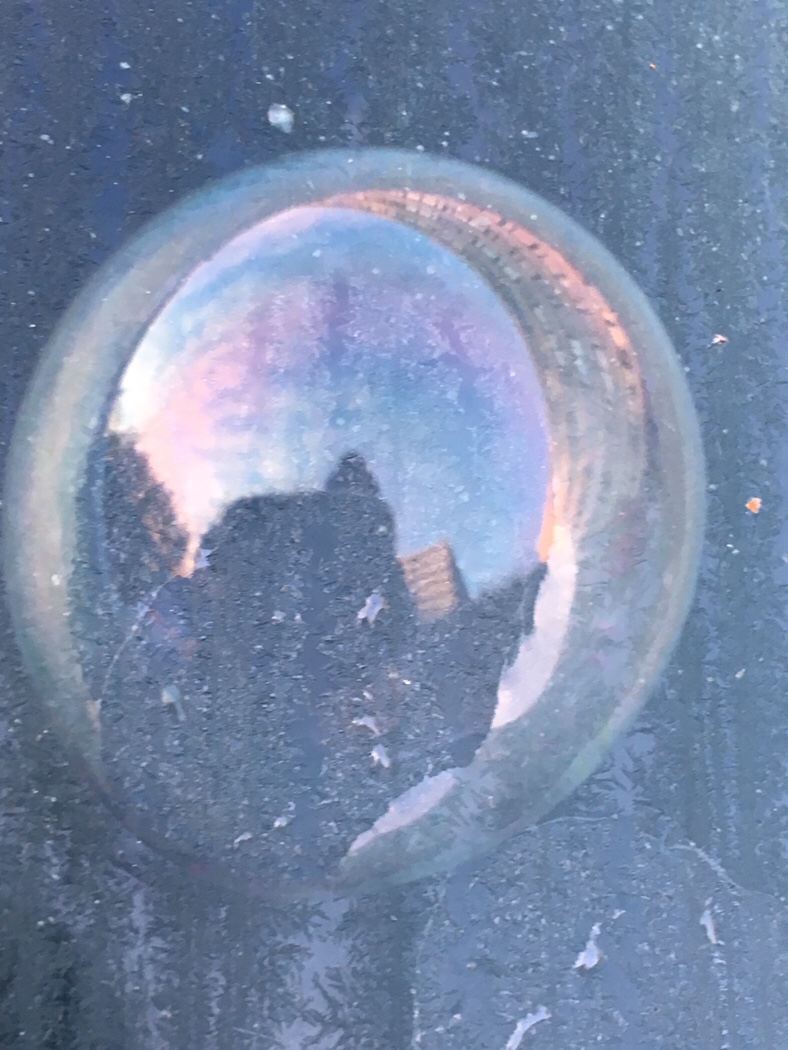 Det lykkedes, sådan da; vores sæbebobleprojekt. Vi fik set smukke isblomster danne sig på indersiden af et par sæbebobler, men solen var ikke stået op, så vi manglede solens effekt i boblerne. Vi havde ikke så meget tid, og det var ‘kun’ -7C. Det skal helst være noget koldere.