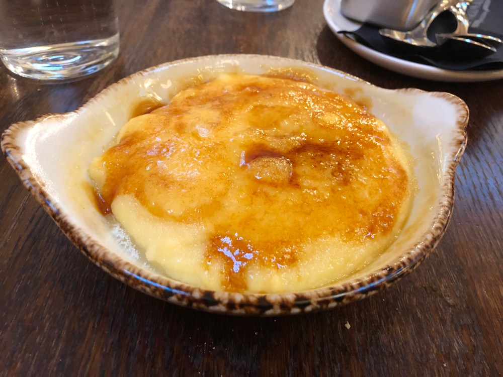 Vi fik en stor portion perfekte Patatas Brava. Så burde man være mæt, meeeen der var plads til en Crema Catalana.