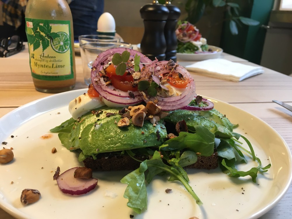 Det er godt spottet, og cafe Mirum er fantastisk hyggelig. Der er rigtig god kaffe til 20-35 kr for cortado og caffe latte. Vi skulle have morgenmad, og der faldt vi for deres åbne avocado-sandwich på hjemmebagt rugbrød med mayo, tomat, ristede hasselnødder og salat. Den var virkelig lækker, og kaffen var virkelig god!