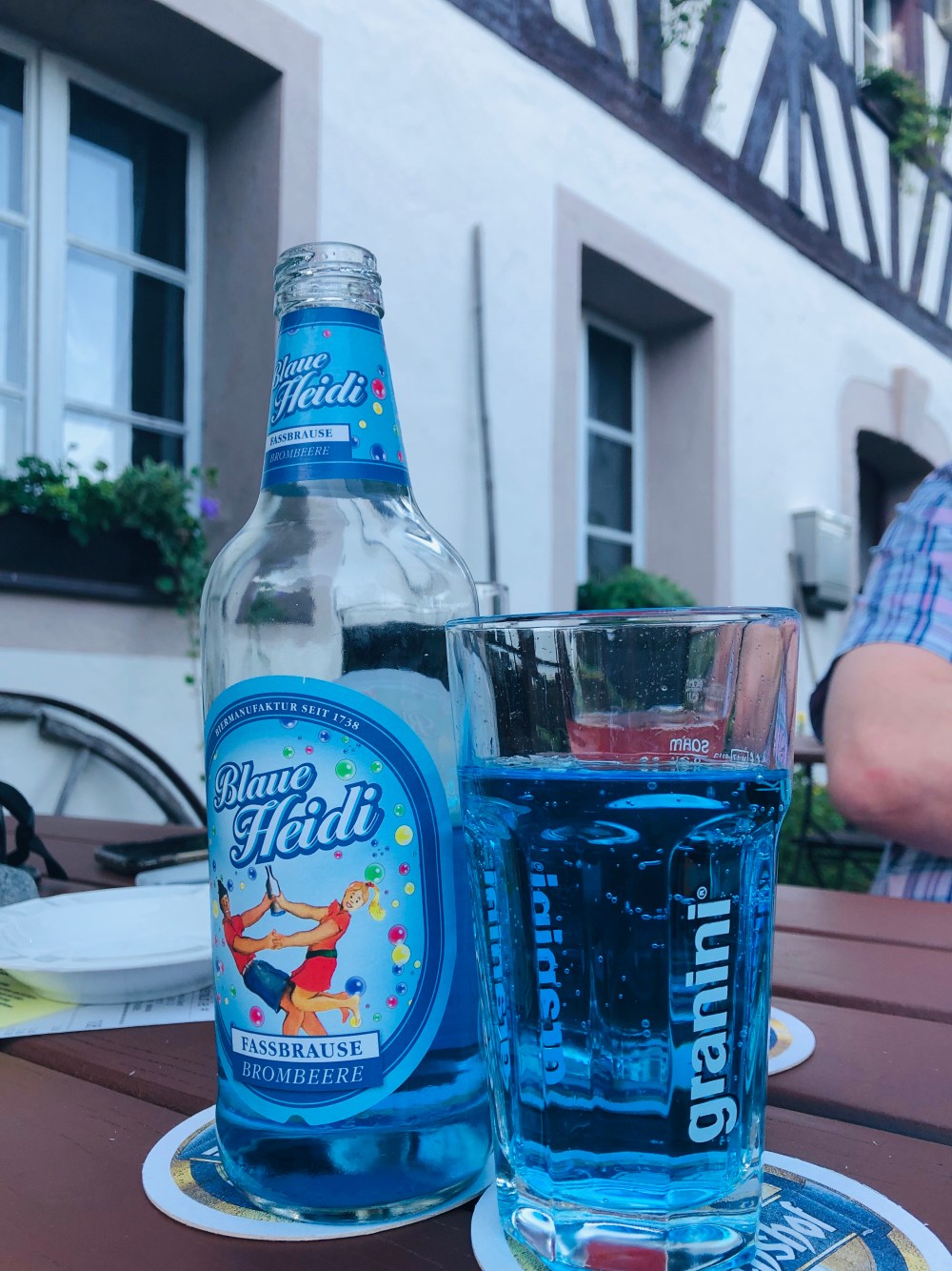 Glemte jeg at nævne, at jeg fik øl til maden? Jeg bryder mig ikke om øl medmindre den er blå, rød eller grøn og smager af hindbær, brombær eller skovsyre (waldmeister). I aften fik jeg en blå engel med brombærsmag. Zum Wohl!