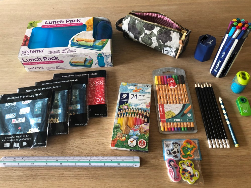 Vi har prøvet at hype skolestarten lidt; han går ikke ned på udstyr. Nye blyanter, nyt penalhus, ny drikkedunk, ny madkasse, nye farveblyanter og nye tuscher. Det interesserer ham ikke rigtig.