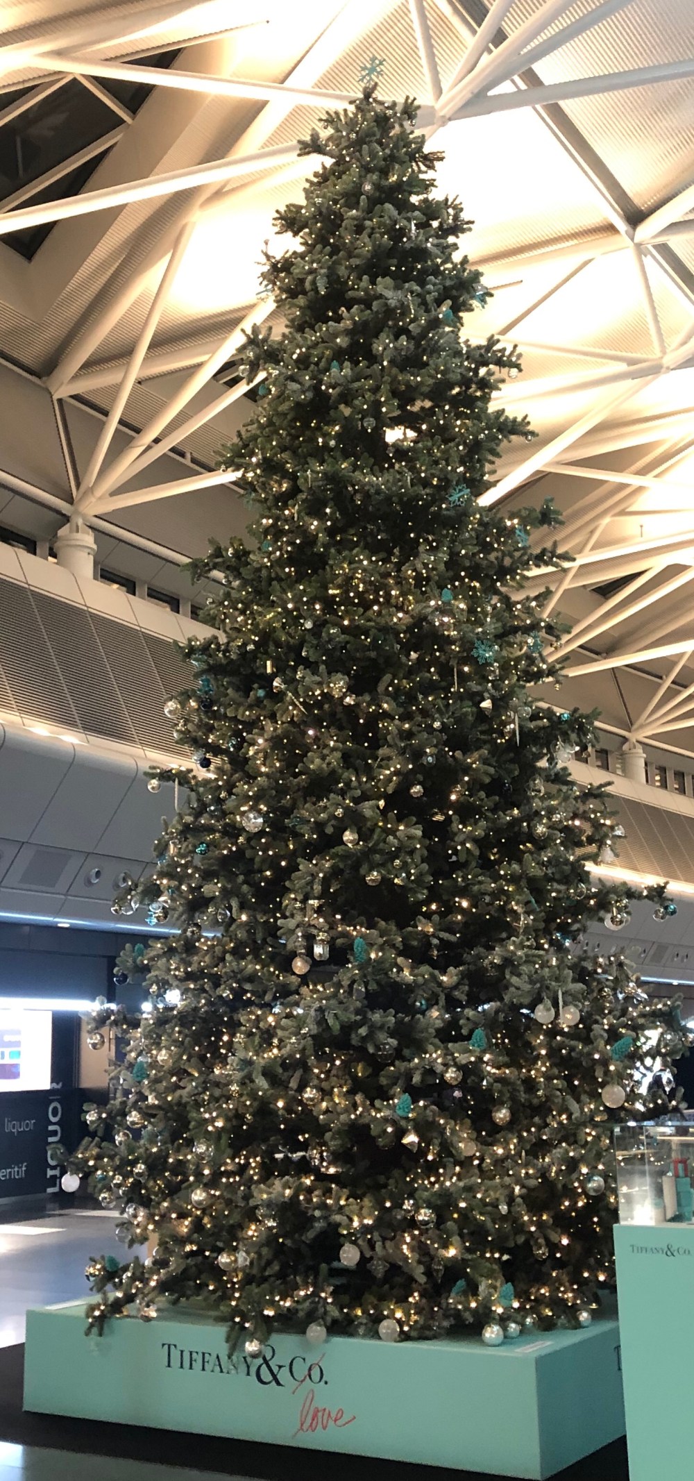 I lufthavnen var der et gigajuletræ pyntet med (plastic)diamanter fra Tiffany’s… Jeg eeeelsker glimtende store overdådige juletræer, og det her var så fint glimtende og glitrende.