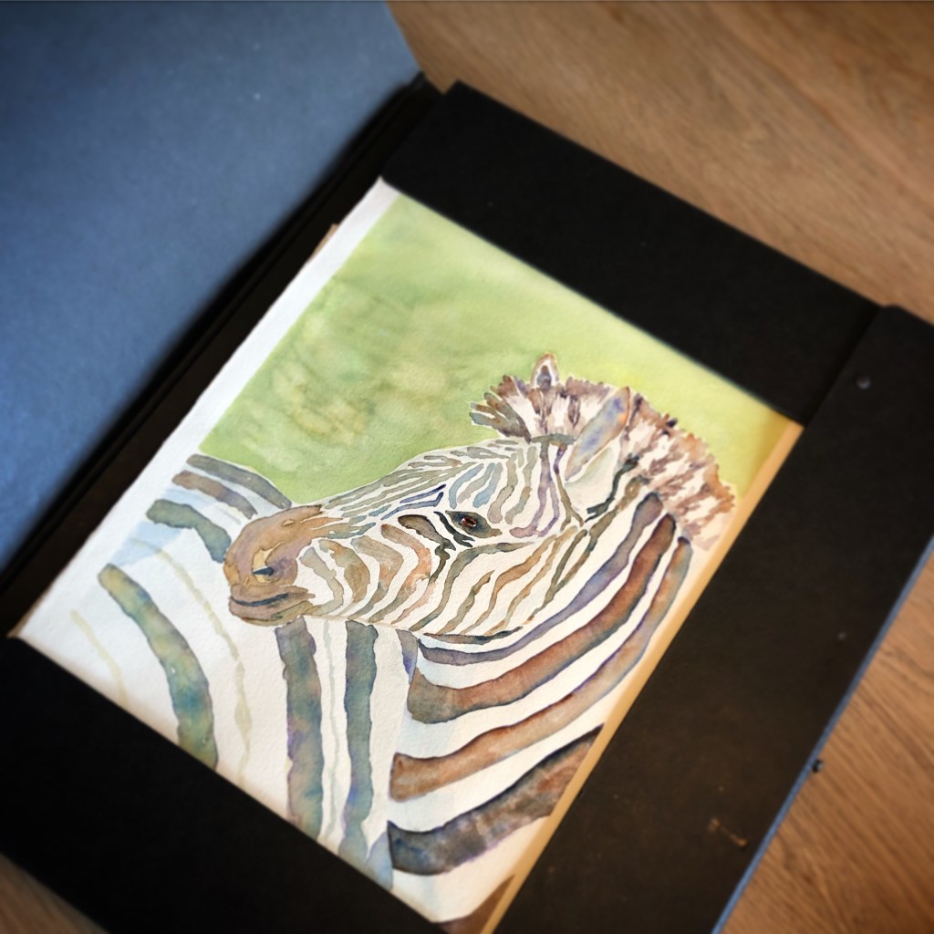 I går fandt jeg en dokumentmappe i sort hårdt pap fra Viking hos Boghandleren – og nu har jeg lige taget den i brug. Malerierne passer perfekt i mappen. Nu er de perfekt opbevaret, og jeg er så glad for løsningen.