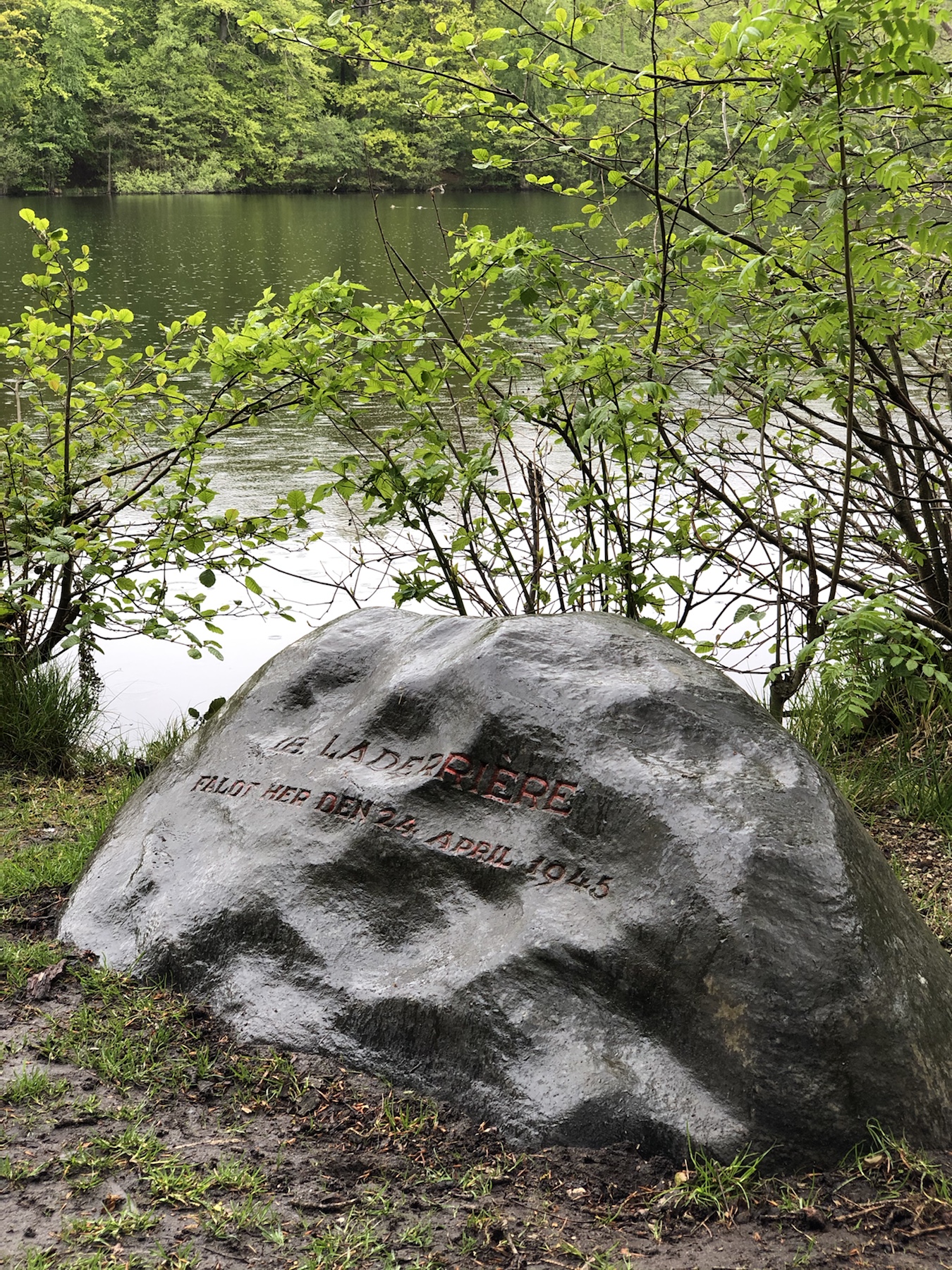 Ved bredden af Agersø er der et mindesmærke for den 24-årige modstandsmand Ib Laderriere, der blev henrettet ved søen i de sidste dage af besættelsen. Mindestenen ligger på den smukkeste plet ved søen under gamle bøgetræer med grene, der hænger tungt ned til vandoverfladen. Jeg fik kuldegysninger ved tanken om, at så smukt et sted var scene for hans voldsomme død for 75 år siden. Det var ikke tyskerne, der dræbte ham, men derimod vore egne landsmænd, der kæmpede på tysk side.