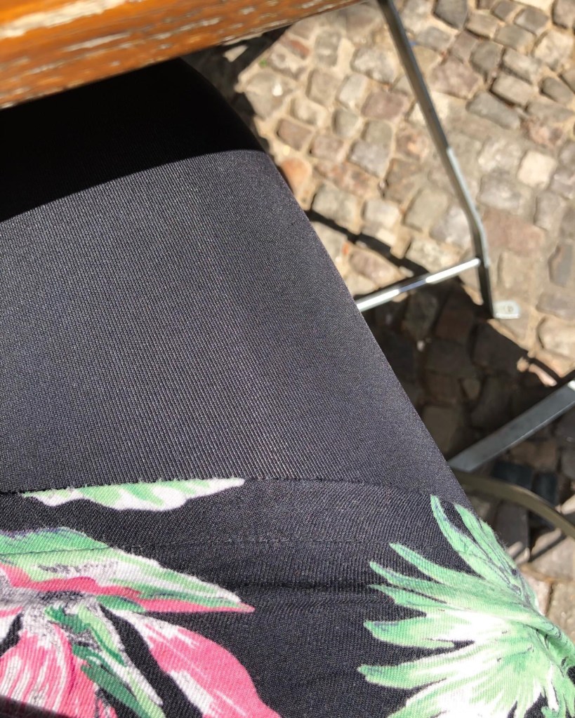 Med vilje har jeg sorte bukser med et højt indhold af lycra på i dag. Det er vel 30C her i solen på Café Placebo på Kastanien Allée, hvor vi sidder lige i solen. Jeg drikker Iced Caramellito Latte og halser diskret som en hund i varmen.