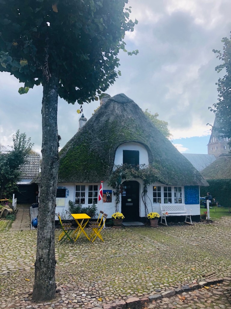 Vi drak eftermiddagskaffe hos mormor på hovedgaden i Møgeltønder. Den lille hyggelige café ligger midt på hovedgaden med toppede brosten i et lille stråtækt hus. De serverer kage, kaffe og mad. Vi kom lige til kaffetid. Og til kagetid 😅