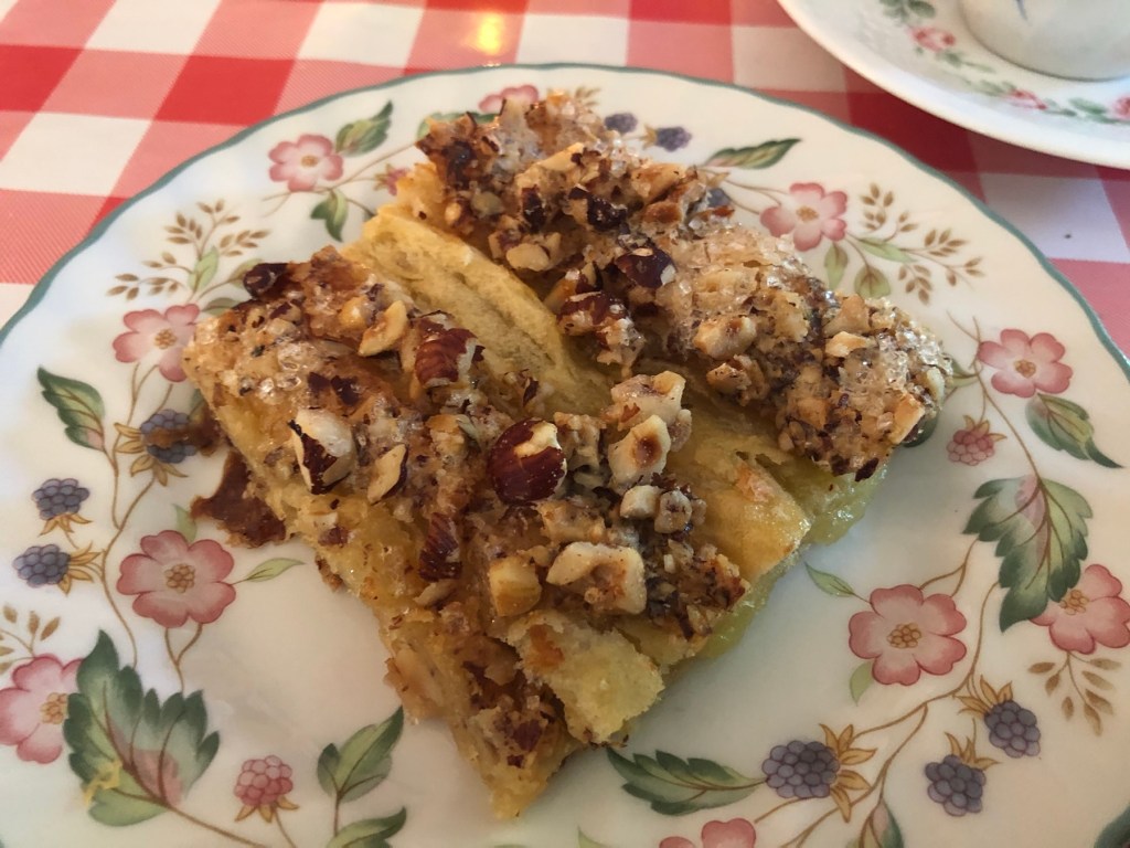 Knægten valgte et stykke kringle. Jeg havde nær glemt hvor godt nybagt kringle smager! Min far bagte altid kringle til min fødselsdag med resten af marcipanen fra jul. Den var i stil med mormors. Mormors var bare lidt bedre (undskyld, far 😅).
