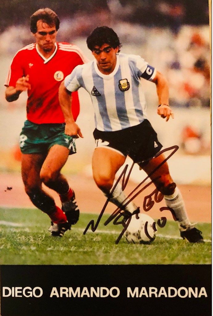 Siden fulgte jeg hans succes i Napoli, og på et tidspunkt skrev jeg et brev til ham. Udenpå kuverten skrev jeg bare “Diego Maradona, Napoli, Italien”. Der gik noget tid, og så fik jeg svar retur: Dette foto med en autograf på kom med posten fra Italien.
