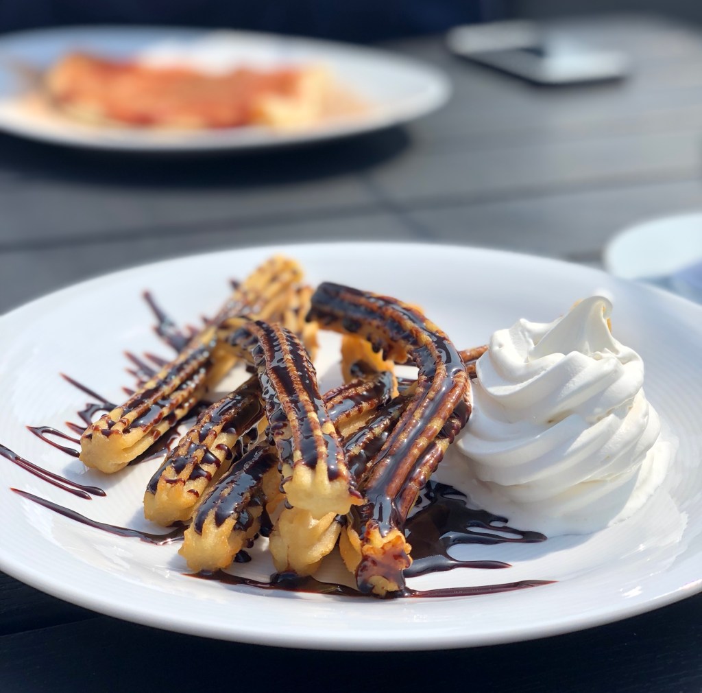 Vi købte et glas honning hos Erling Atzen til bedstefar og fortsatte til Havnebyen, hvor vi stoppede hos Pandekagehuset. Det kan jeg klart anbefale. Knægten fik en frisklavet pandekage, og vi delte en flok churros. Jeg fik en lækker Macchiato til.