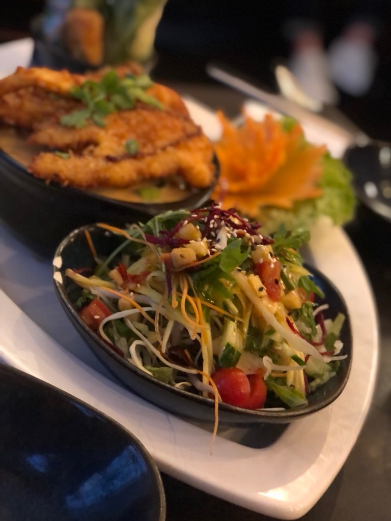 Vi fik bord indendørs og skulle vise Coronapas (kun os voksne). Vi bestilte menu #2. Den har vi fået før, og den er fantastisk! Denne gang var det bedre end nogensinde.