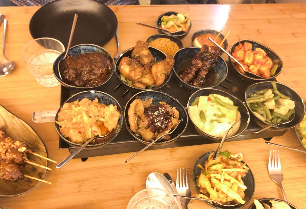 I Danmark var der ofte ristaffel på menuen i 80’erne, når det skulle være eksotisk. Så knappede man en Uncle Bens sur/sød sauce (eller karrysauce) op, stegte kylling, og så hældte man dåseananas, kokosmel, bananskiver og peanuts i små skåle. Det er ikke helt det samme i Nederlandene (som Holland hedder nu, efter de skiftede navn).