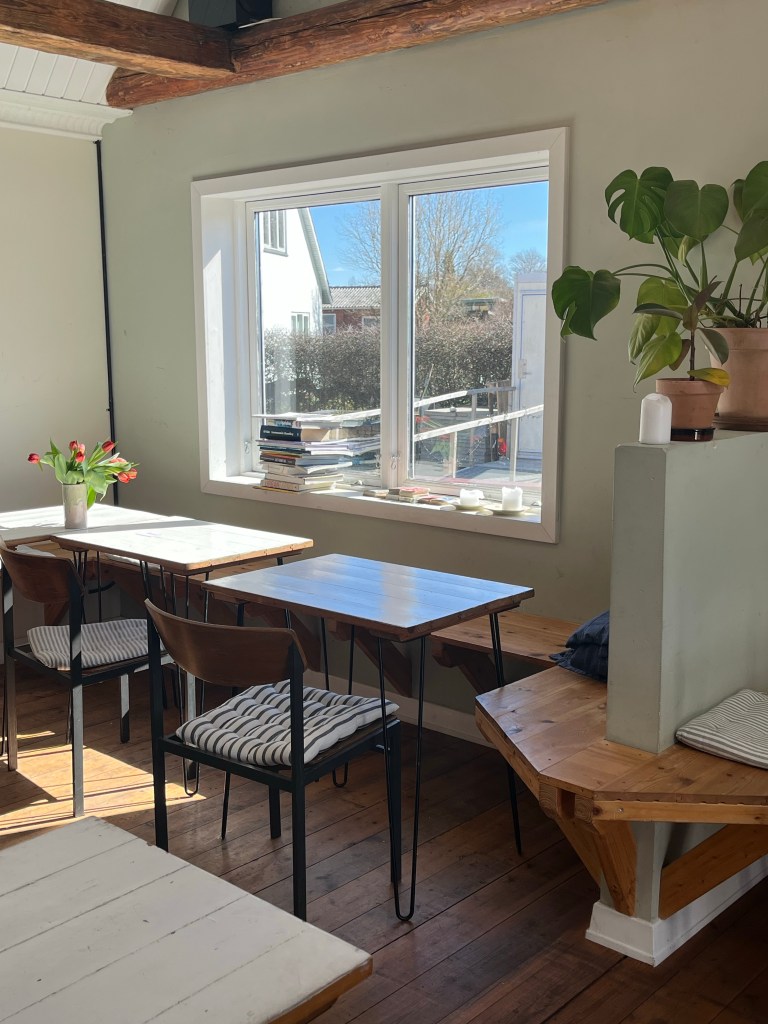 Caféens indretning er enkel og hyggelig med træmøbler og en indbydende atmosfære. Der er både siddepladser indendørs og udendørs, og i sådan en skøn solrig påske er deres store træsolterrasse et kæmpe hit. Her kan man nyde det gode vejr og den friske luft.