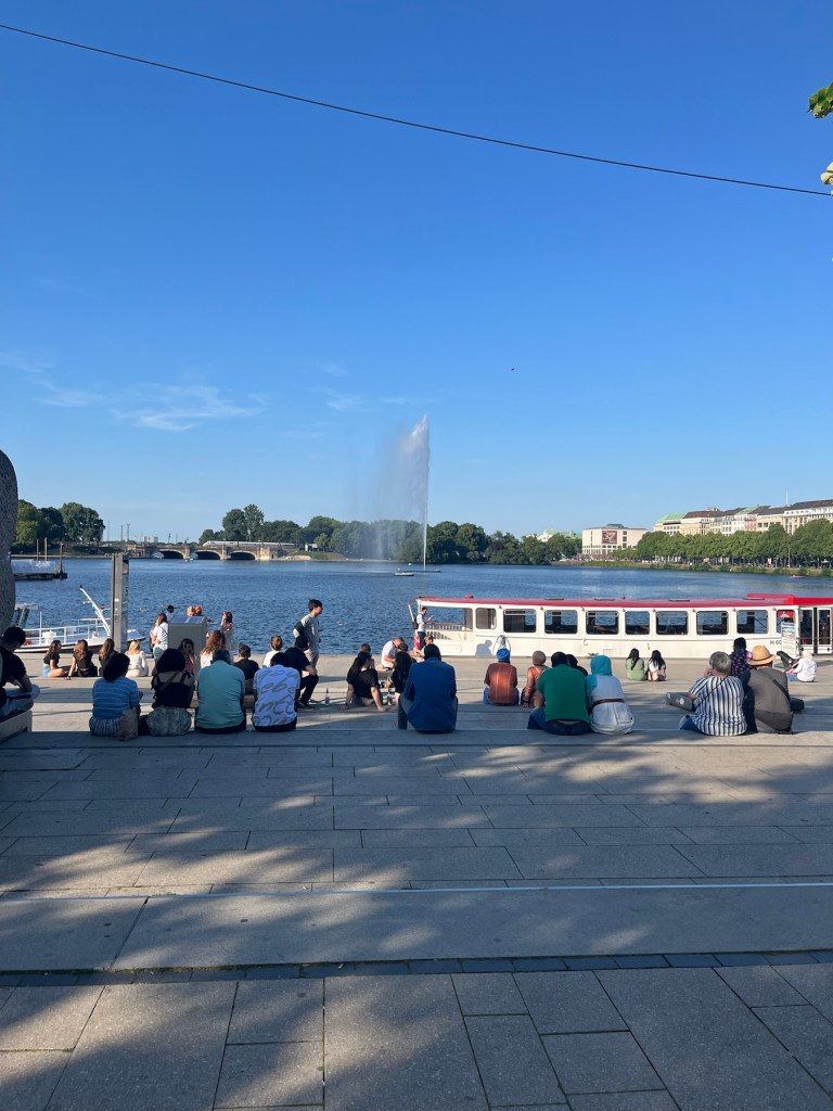 Hamburg i går. 26C. Fed stemning i byen forud for 8’delsfinalen.