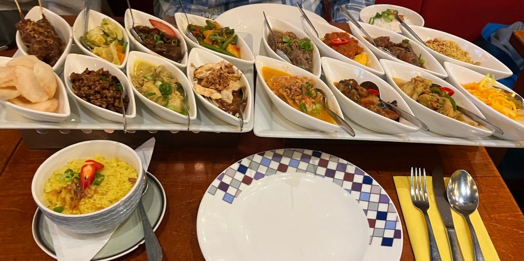 Rijstafel .. det skal vi da ha’! Vi besøger ikke Amsterdam uden at smage på bitterballen og rijstafel. Jeg havde søgt vidt og bredt efter ‘bedste rijstafel’ og svaret var ret entydigt: Tujuh Maret.
